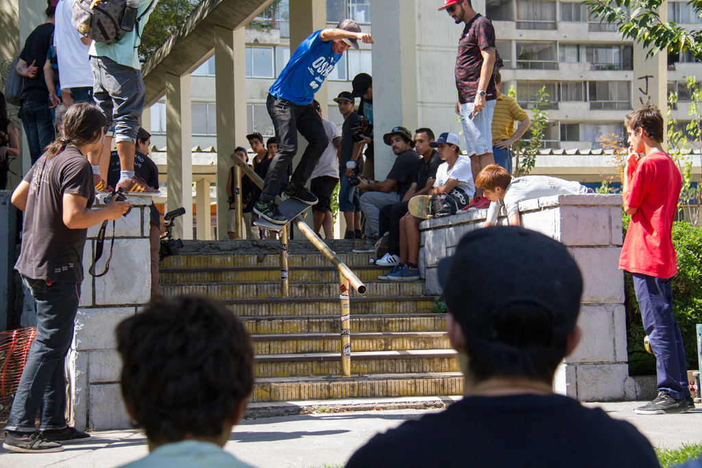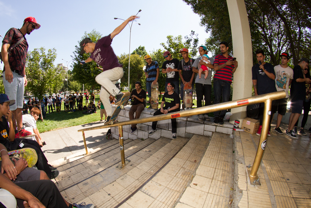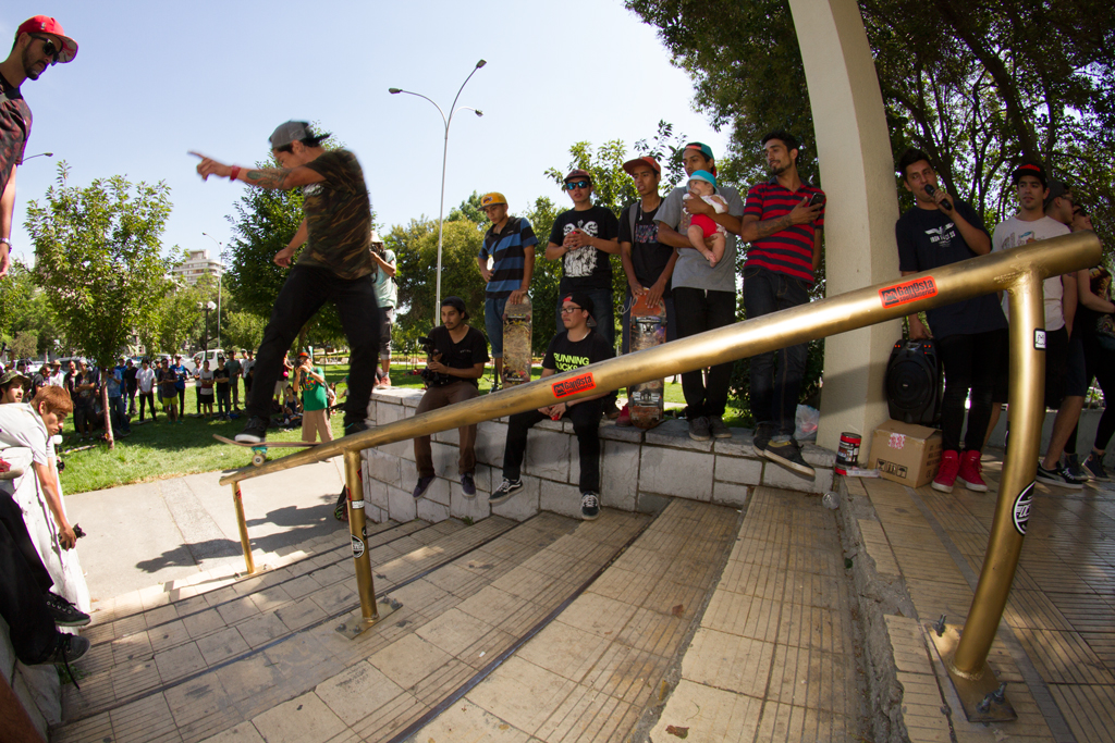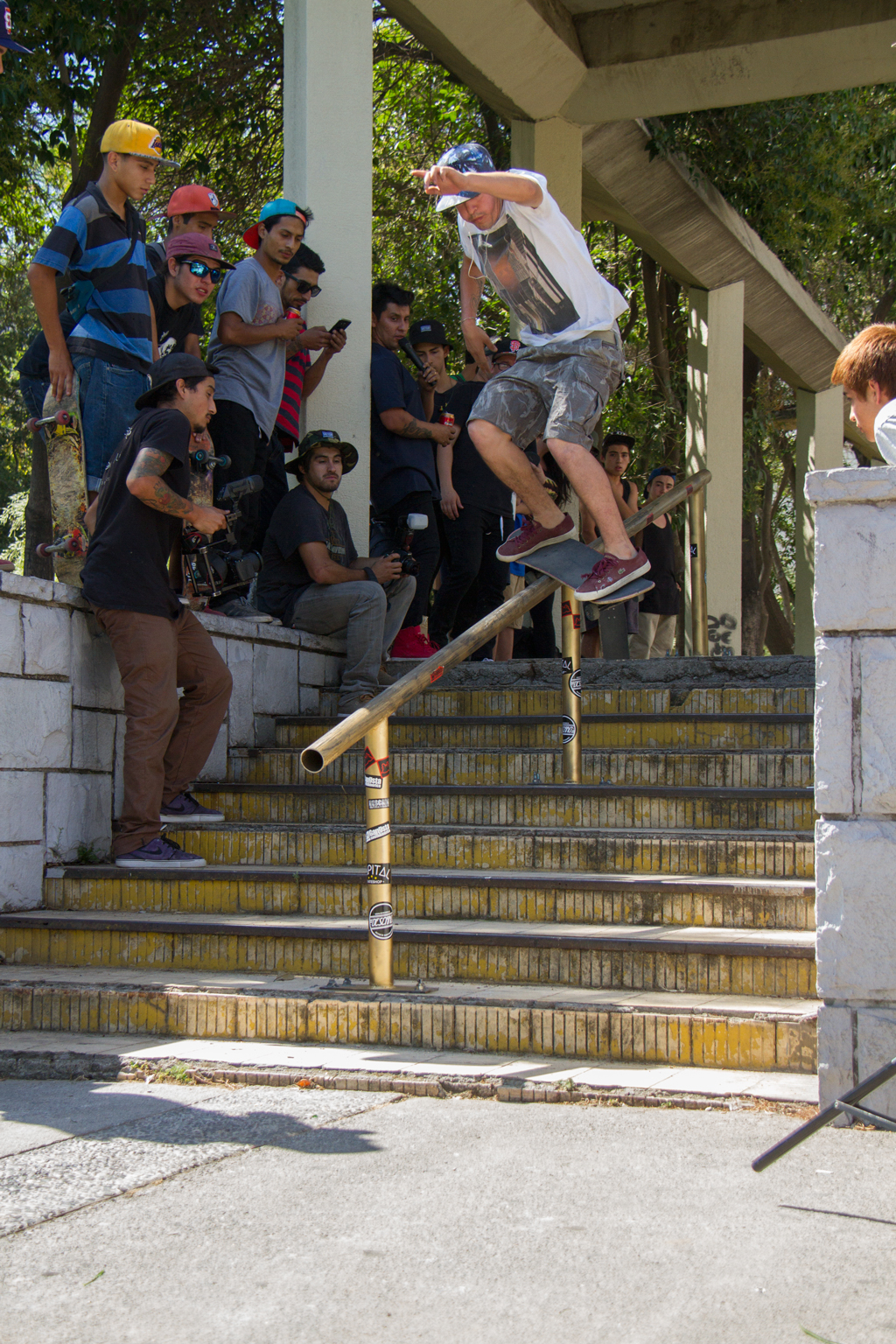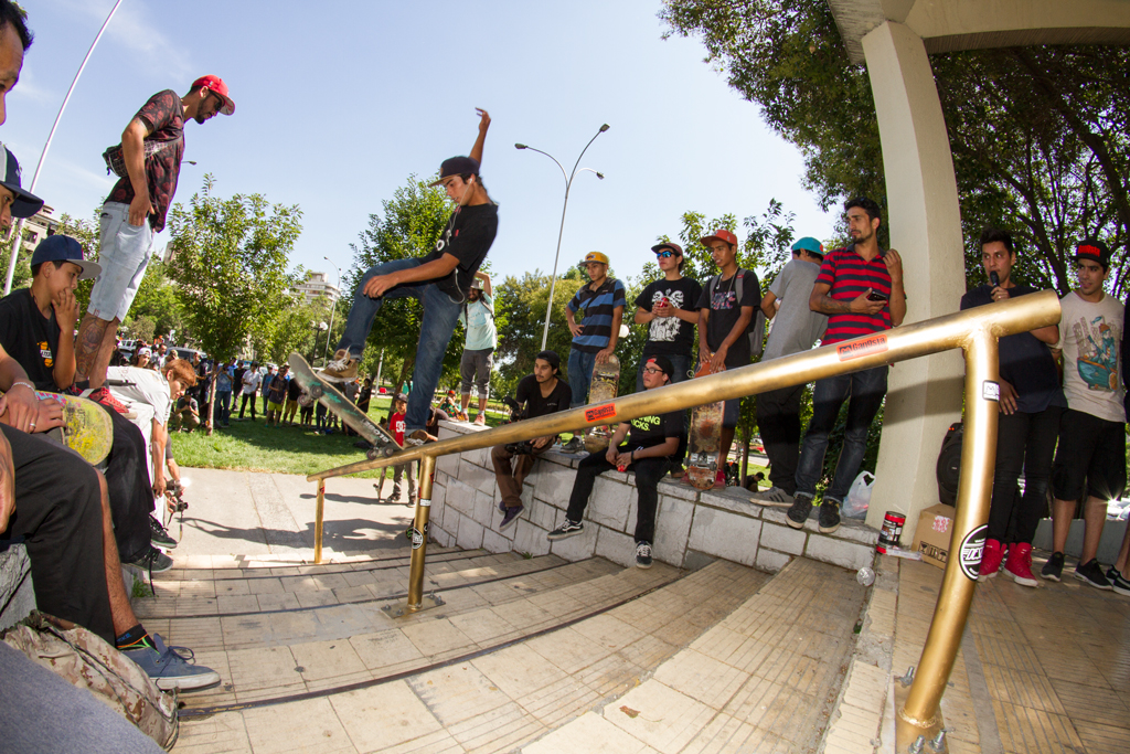El pasado 30 de enero los amigos de Gangsta en conjunto con IRON FORCE le pusieron una terrible baranda a la clasica escalera de las torres de tajamar, donde realizaron un best trick para elegir un nuevo rider para el equipo, donde el ganador fue Alexis Vera quien se llevo el premio con un terrible flip bs lips y flip fs bores, y en la categoria pro Jesus Muñoz le bajo flip crooks llevandose 70 luquitas y un trofeo calidad!